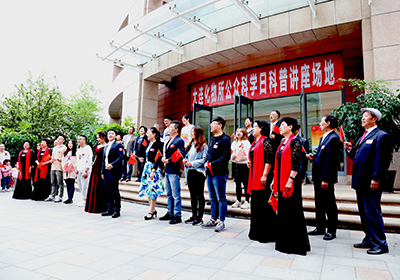 17日早九点,几声清脆优美的钢琴声响起,一声空灵悦耳的清唱划破天际,一场别开生面的“快闪”活动在能源楼会议中心广场为本届公众科学日活动拉开序幕,由离退休合唱团、歌唱协会、器乐协会及职能部门职工组成的老中青三代联袂演唱、演奏了全新编曲的《大连化物所所歌》和《我和我的祖国》,用歌声献礼大连化物所70岁生日,献礼共和国70华诞。到场的院士、科学家及现场聚集的观众自发齐声合唱,饱含深情的歌声充满了一代代化物所人心中爱国爱所的深情厚意,激发了广大职工、研究生建设世界一流研究所的澎湃豪情。