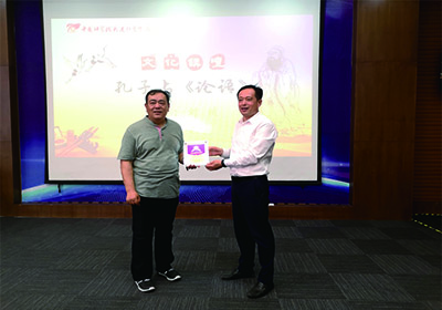 6月5日下午,为纪念五四运动100周年及庆祝中科院大连化物所建所70周年,结合第十届“大连读书季”活动,大连化物所邀请大连理工大学图书馆研究馆员刘斌作客”文化讲坛”,并在能源基础楼一楼会议室作了题为“孔子与《论语》”的精彩讲座。党委副书记、纪委书记毛志远为刘斌颁发了“大连化物所文化讲坛贡献奖”奖牌。所内青年职工、研究生共60余人参加活动。