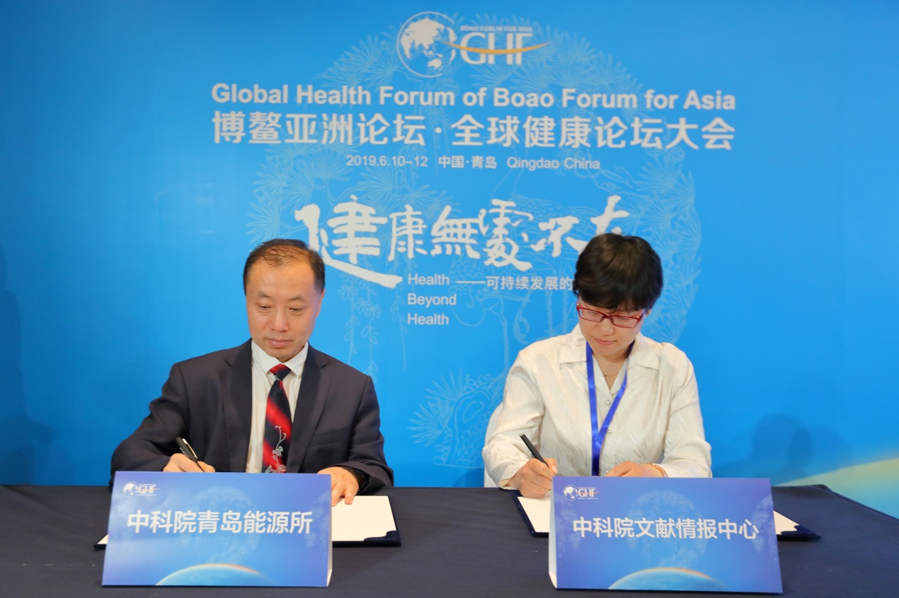 6月11日,在博鳌亚洲论坛全球健康论坛大会期间,青岛能源所与中国科学院文献情报中心签署战略合作协议,双方将共同筹建“微生物组数据科学联合实验室”。协议由青岛能源所党委副书记冯埃生与文献情报中心主任助理张冬荣共同签署。博鳌亚洲论坛秘书长李保东、山东省副省长孙继业、青岛市市长孟凡利、副市长薛庆国等领导和嘉宾见证签约仪式。