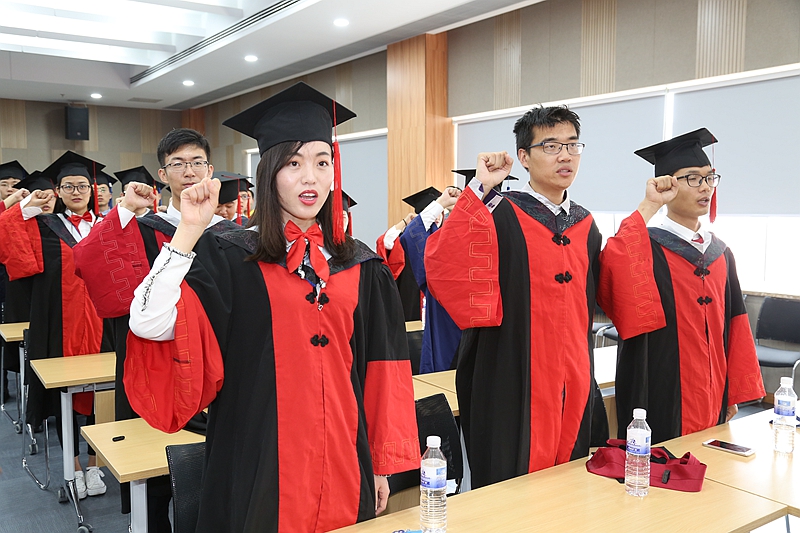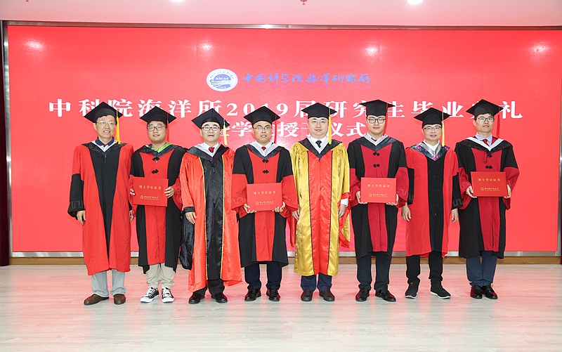 典礼上,全体毕业研究生举起右拳,庄严进行毕业宣誓:坚守中国科学院传统,弘扬海洋研究所文化;唯实求真,践行耕海探洋;博学笃志,心系民族希望;格物明德,永做社会栋梁;创新报国,致力国家富强。
