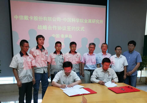 6月24日,我所与中信戴卡股份有限公司(简称“中信戴卡”)在秦皇岛签署战略合作协议。根据协议,双方将发挥各自优势,在新型汽车零部件研发方面深化合作,加强科研成果转化和应用,促进中信戴卡的全球化发展。