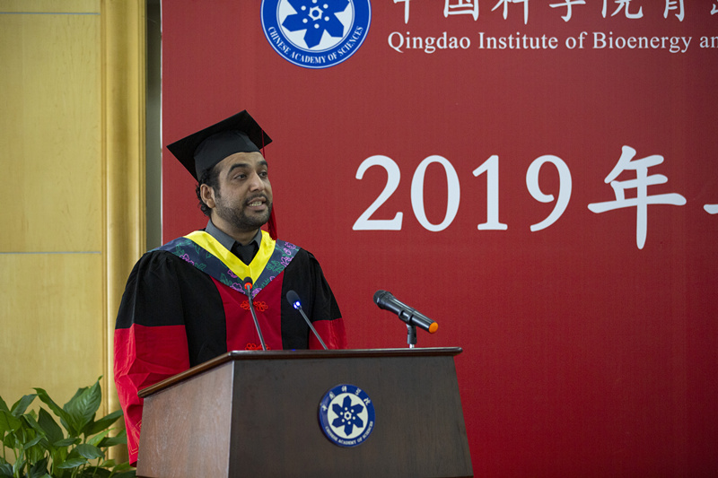 张宁、BILAL SHAHID分别代表毕业生及毕业留学生表达了对研究所的感激与不舍,感谢导师多年来的辛勤培养。张宁在发言中表示,要时刻铭记研究所的教诲,将个人的发展同祖国的命运紧密相连,做有志向、有梦想、敢创新,做社会主义事业的合格接班人。