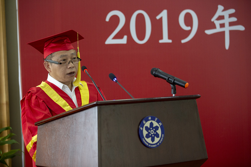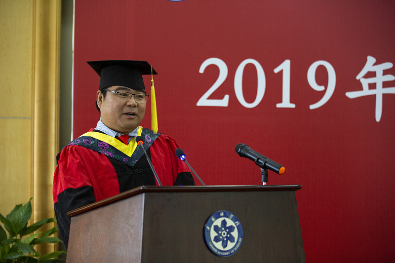 导师代表郭荣波研究员向毕业生们表达了衷心的祝贺,诚挚的祝福、以及殷切的期待,期待毕业生们能成为健康快乐的人,成为勤奋实干、坚守梦想、爱家又爱社会的人,成为独立思考、独立规划、独立判断的人。