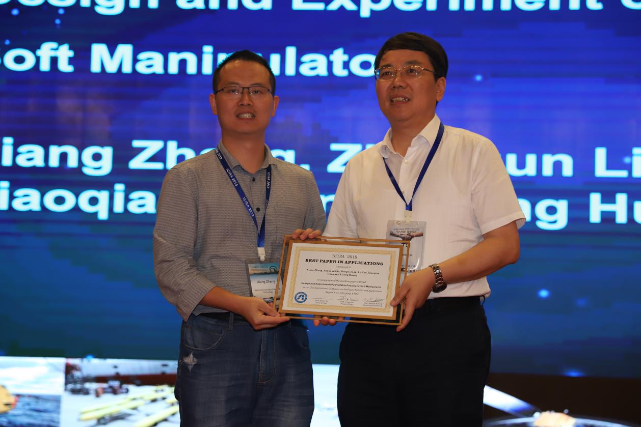 经严格的投稿、审稿等流程,380多篇论文被大会录用;220篇论文以口头报告展示, 160篇论文以海报展示?;嵋槁畚哪谌莺橇思夯魅恕⒁贫魅?、水下机器人、飞行与航天机器人、机器人加工、智能制造、人机交互、机器视觉、虚拟与增强现实等40多个主题,与会人员交流、讨论了前沿话题和最新研究成果?;嵘希拱浞⒘吮窘齑蠡岬摹白罴延τ寐畚慕薄?、 “最佳机器人论文奖”和“最佳学生论文奖”?;锌萍即笱Ф『涸菏?、于海斌研究员和刘金国研究员分别为获奖者颁奖。