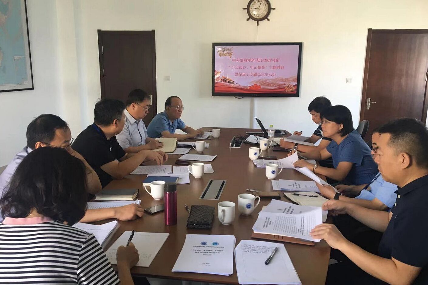 8月23日上午,按照中央及中国科学院主题教育指导组部署,中科院海洋研究所、烟台海岸带研究所联合召开了“不忘初心、牢记使命”主题教育领导班子专题民主生活会。海洋所、烟台海岸带所所长王凡,海洋所党委书记王辉,烟台海岸带所党委书记、海洋所副所长高玲瑜,海洋所、烟台海岸带所常务副所长杨红生,海洋所、烟台海岸带所副所长李超伦,烟台海岸带所党委副书记、纪委书记王晓斌,海洋所党委副书记、纪委书记毕伟参加会议,院主题教育第八指导组成员、沈阳分院院长助理、综合办主任杨宏到会指导?;嵋橛珊Q笏澄榧峭趸灾鞒?。