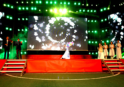 第三篇章“追梦”体现了大连化物所人追寻梦想,坚定前行的情怀。瑜伽舞蹈《大鱼》舒展优美,赞美了为实现梦想而勇敢的担当与守护。大连化物所自由基乐队与耿旭辉副研究员、校友舒清柱联袂表演的《真的爱你》演奏精湛,演唱精彩,唱出了每一个化物所人的心声。舞蹈《我的梦》优美而有力量,跳出了化物所人追梦路上永不言弃的执着追求。由青年科学家、管理骨干、职工、学生、校友共同演绎的歌曲《我们都是追梦人》展现了新一代化物所人为了梦想勇敢拼搏的信心和决心。本篇章最后是全体演员齐唱的《我和我的祖国》,歌声引起全场观众大合唱,伴着深情的歌声,舞动的荧光棒照亮了每个人笑意盈盈的脸庞,灯光照耀所园区上空的夜幕,在每个人脑海中留下今宵永恒的印记。