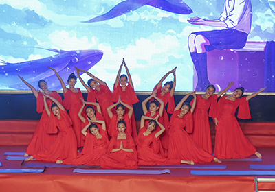 本场晚会分为“燃梦、筑梦、追梦”三个篇章。首先进行的“燃梦”篇章点燃了在场观众的如火热情。一曲热情洋溢,充满蓬勃朝气的开场舞——化物所版《卡路里》瞬间燃爆全场,动感的舞蹈和原创的歌词相得益彰,台上青春涌动,台下掌声雷动,笑声不断。来自青岛能源所温元帅独唱的《我爱你中国》,歌声高亢澎湃,唱出了对祖国深深的热爱。大连化物所张青研究员、职工、家属及学生共同演绎的器乐舞蹈《茉莉花》,悠扬婉转,颂扬着我国科研事业如茉莉花般举世瞩目,绚烂多姿。来自中科院幼儿园大连园的职工子女们带来的《篮球宝贝》童趣无限。来自理工附校同学们的舞蹈《苔米花开》朝气蓬勃,让在场观众获得了美的享受。