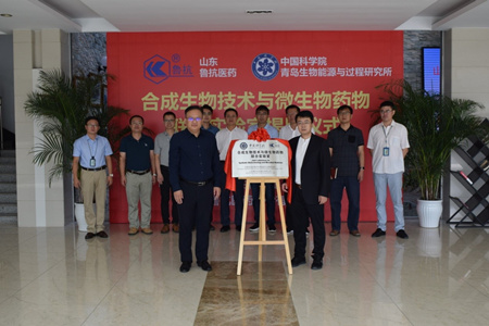 青岛能源所联合山东鲁抗医药股份有限公司围绕微生物药物合成生物技术打造产研合作平台,共建“合成生物技术与微生物药物联合实验室”,9月21日上午在青岛举行了揭牌仪式。鲁抗医药董事长彭欣和青岛能源所党委书记彭辉共同为联合实验室揭牌。研究所副所长吕雪峰、副书记许辉,鲁抗医药药物研究院院长郑长春、鲁抗舍里乐药业研发总监郭强、鲁抗生物农药公司总经理靳志刚等出席仪式。许辉主持揭牌仪式。