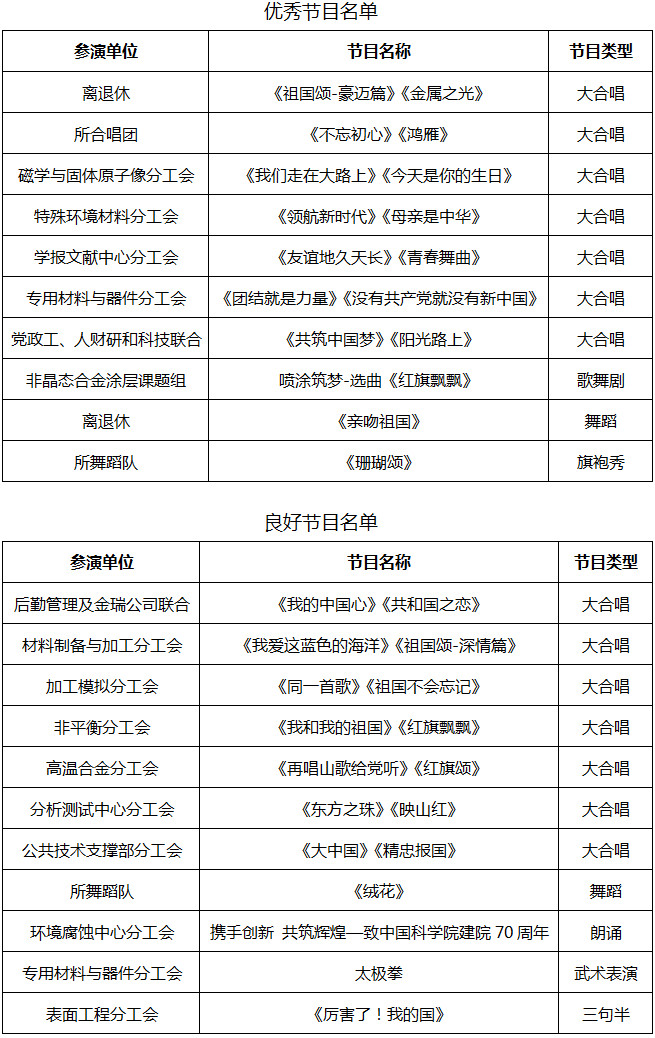 本次文艺汇演的各参演单位认真对待、积极准备,在业余时间,充分利用车间、会议室、广场等有限的活动场地精心排练,历时近4个月时间的筹备,最后奉献了一场热情澎湃、精彩纷呈的演出?;阊莸某晒侔欤浞窒允玖私鹗羲姆绮珊突盍?,展现了我所职工团结奋进、锐意进取的精神风貌,进一步提振了士气,凝聚了人心,鼓舞了斗志,有效地推动我所创新文化建设,激发了广大职工和研究生爱党爱国爱院爱所情怀。