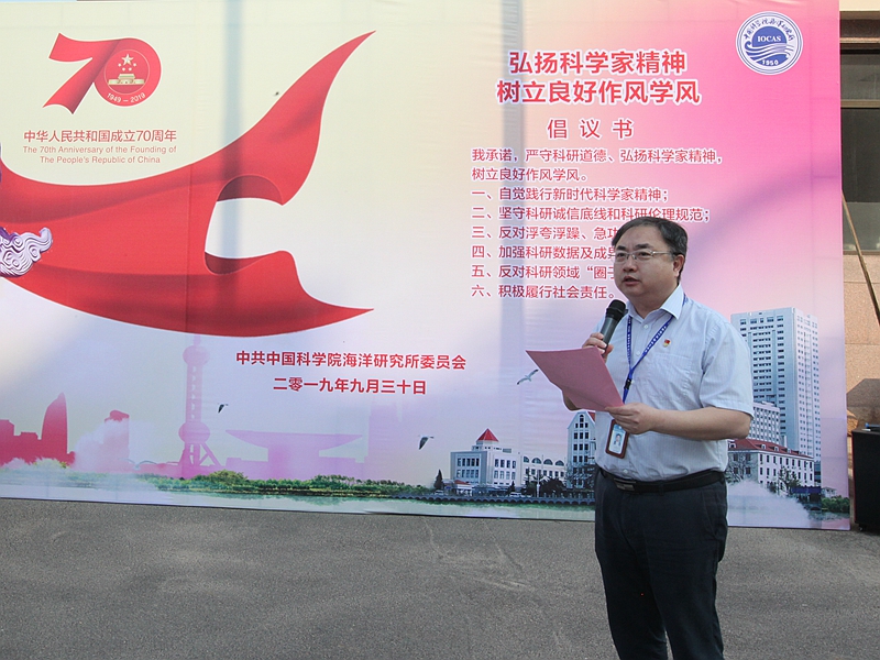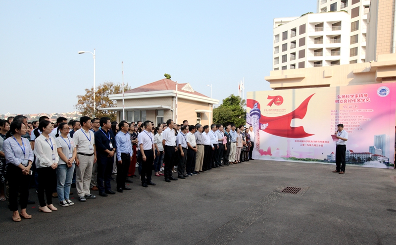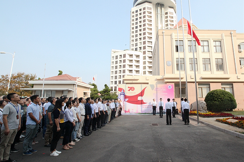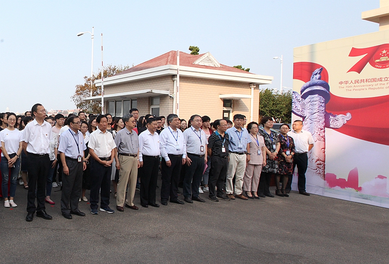 为庆祝新中国成立70周年,弘扬爱国主义精神,9月30日,海洋所隆重举行庆祝新中国成立70周年升国旗仪式。中科院党组驻海洋所巡视组成员、沈阳分院分党组书记姬兰柱以及海洋所全体职工和研究生参加升旗仪式,海洋所党委书记王辉主持仪式。
