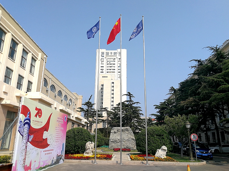 迎风飘扬的国旗、院旗和所旗