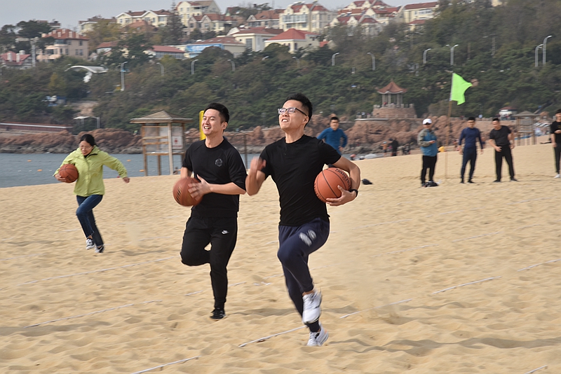 8点30分,比赛正式拉开帷幕,沙滩上立刻热闹起来。湛蓝的海水,柔软的沙滩,洋溢的笑脸,沙滩运动会现场一派生机勃勃的景象。篮球射门比赛考验的是足下功夫的力量与精度,二人三足注重的是团队的默契配合,60米托球跑要求速度与技巧的完美结合,60米跑考验爆发力,跳绳、踢毽子、铅球、跳远等项目竞争激烈。经过三个小时紧张激烈的比赛,这场既充满趣味性又考验团队凝聚力的沙滩运动会圆满完成各项比赛项目,顺利落下帷幕。
