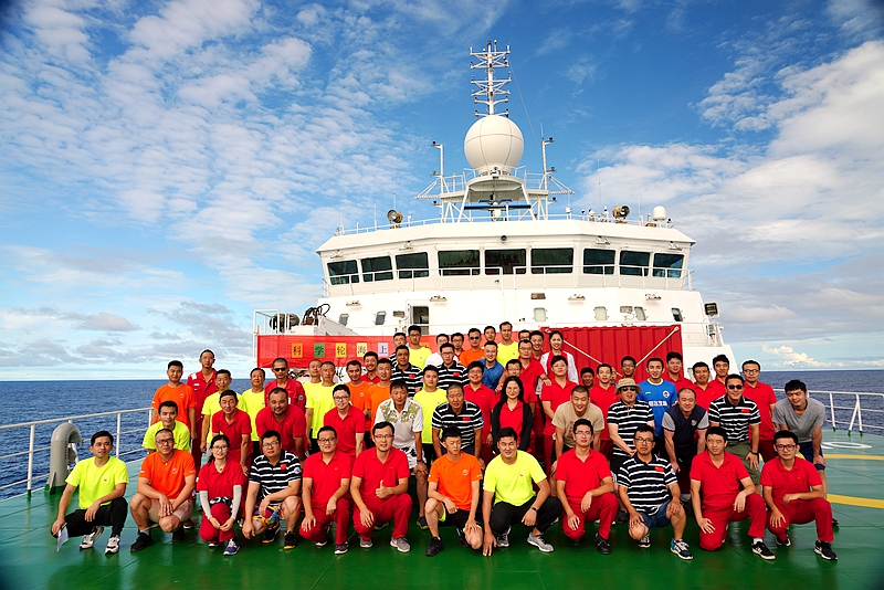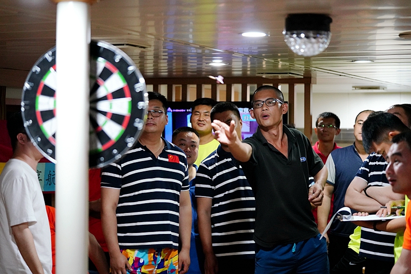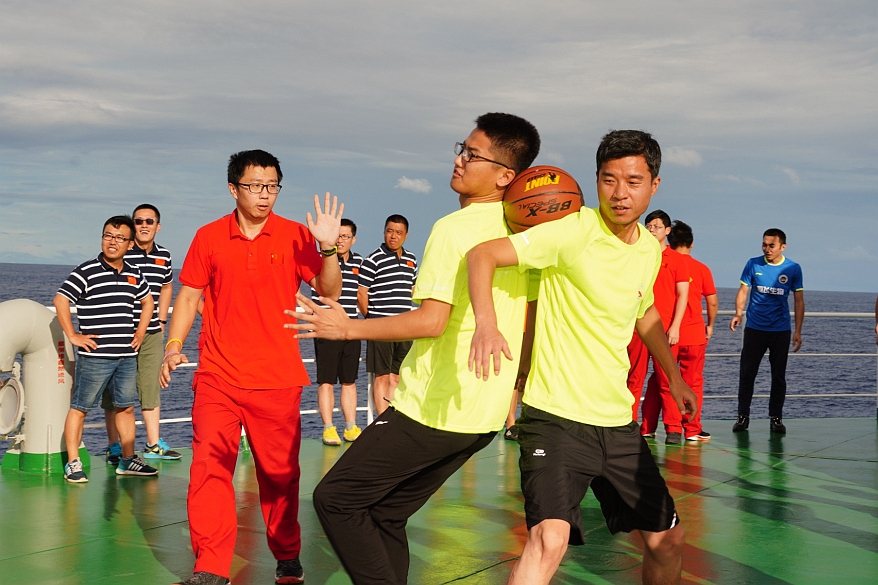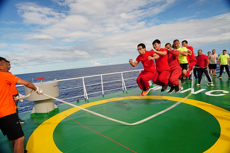 正在西太平洋执行国家自然科学基金委2019年共享航次的“科学”号科考船在海上同步举行了别开生面的趣味运动会。根据船上空间和器械条件,共设置集体跳绳、六人接力托球跑、双人夹球跑三个集体项目,以及乒乓球、地滚球、投篮、飞镖四个个人项目,为紧张的科考工作增添了乐趣。