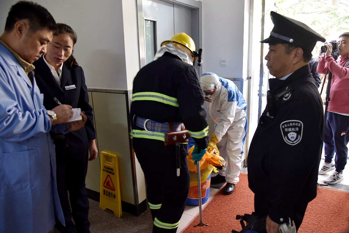 为贯彻落实《国家突发环境事件应急预案》《突发环境事件应急管理办法》《企业事业单位突发环境事件应急预案备案管理办法(试行)》,有效防范应对突发环境事件,海洋所协同青岛市环境?;た蒲а芯吭?,结合研究所实际共同编制《中国科学院海洋研究所突发环境事件应急预案》。该预案已经专家函审通过,按要求在环保相关部门备案并进行定期安全演练。本次演习是预案实施后开展的首次实验室突发环境事件应急演练。