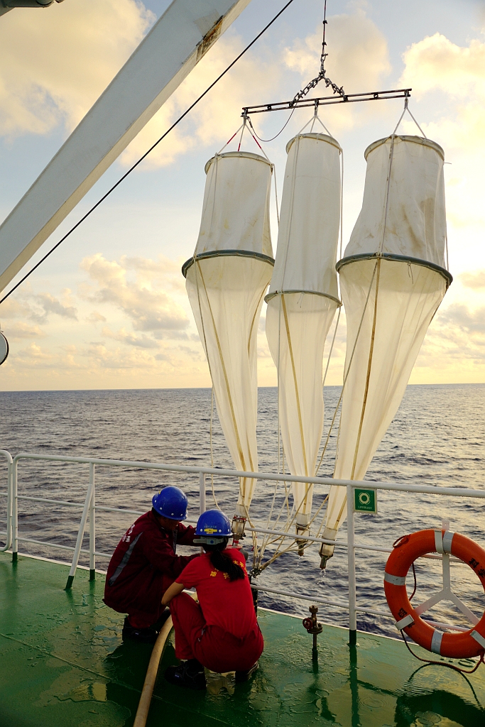 工作人员进行生物垂直拖网