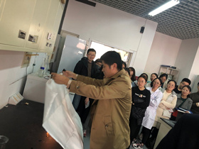 活动分三个系列。第一系列为知识宣贯。通过张贴宣传展板、悬挂宣传横幅、发放知识手册等手段,宣传消防安全人人有责的理念,强化消防安全重要性,提高人员消防安全意识。第二系列为技能培训。研究所安全讲解员走进实验室,根据实验室具体情况,现场讲解实验室火灾预防、初期火灾扑救、火灾逃生技巧等,增强科研人员消防安全技能。第三系列为操作演练。为了达到学以致用,消防知识宣传培训结束后,研究所通过模拟火灾,让科研人员亲身参与火灾逃生、火灾扑救,让大家掌握灭火器、灭火毯等消防设施的使用技巧。