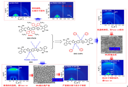 有机光伏电池由于具有柔性、质轻、可潜在大规模印刷制备等诸多优点而受到广泛关注。该类器件的吸光层的形貌对器件的光电转换性能和器件工艺难易度有重要的影响。从分子设计角度,发展新型高效材料和加深对材料聚集特性的认知,提升器件光电转换性能的同时发展易形貌调控的器件工艺,对发展大规模印刷工艺以及快速推动有机光伏的应用具有重要的意义。