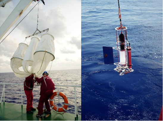 垂直拖网(左)和生物泵拖网(右)作业