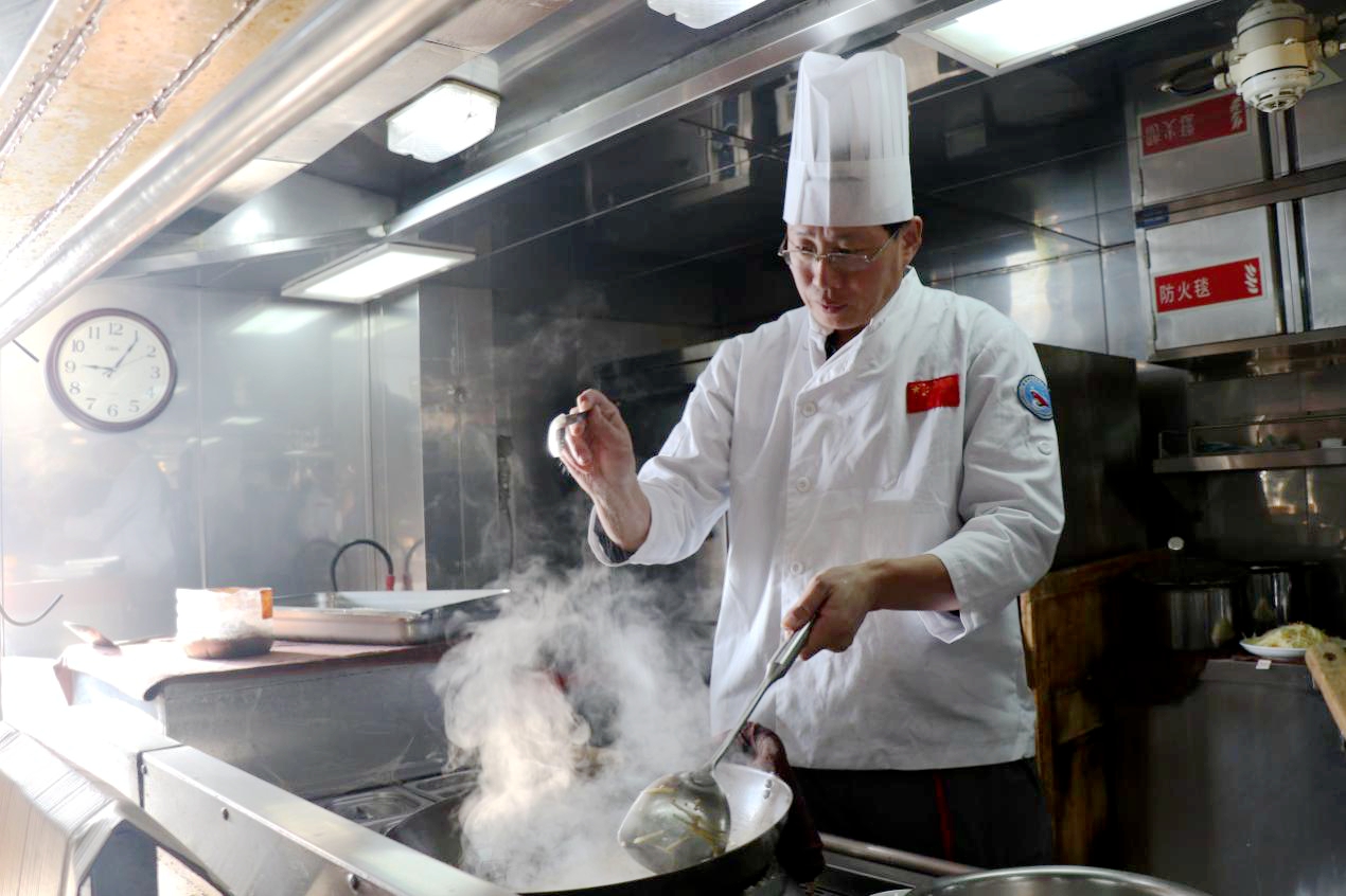 技能大比武环节,结合科考船工作实际设置了10个比赛项目,包括考验驾驶员航海技术的“罗经差计算”,考验水手基本功的“撇缆”“绳结”“钢丝绳插琵琶头”,特色趣味比赛“厨艺大比拼”,考验轮机员技术水平的“缸套圆度、圆柱度测量计算”以及考验轮机自修水平的“焊工工艺”“钳工工艺”“电工工艺”“冷却器垫床制作”等。广大船员充分发挥自己的专业技能,以各比赛场地为战场,展开激烈角逐,最终产生了各项目的一二三等奖。