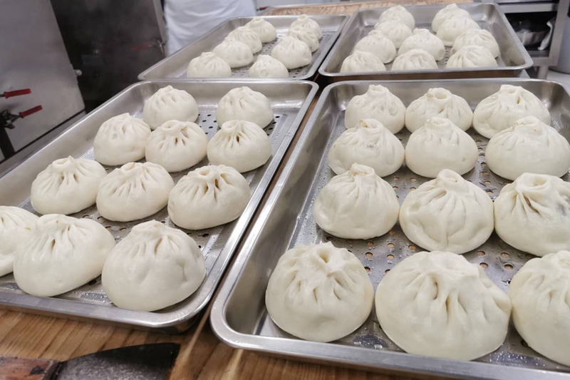 新冠肺炎疫情发生以来,为减少人员聚集,食堂取消了堂食,以盒饭套餐形式供餐。每天早上9点,各部门订餐联络人将本部门当天所需午餐数量反馈给王保新,他会根据实际需求掌握备菜数量。为了确保营养均衡并照顾大家的口味,每天的套餐分成了A、B两种,配套一份汤,每种套餐的主食都可以自选米饭或者面食。另外,还有单独的包子等进行供应。