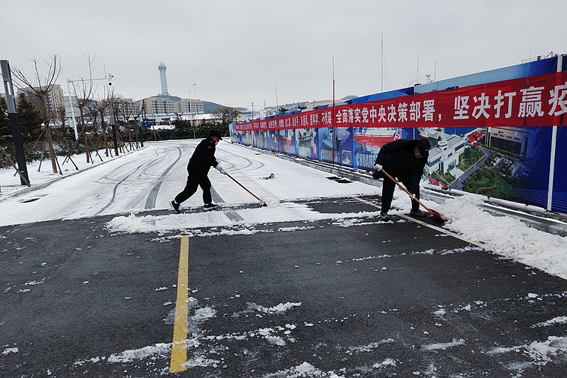 西海岸园区物业人员清理积雪