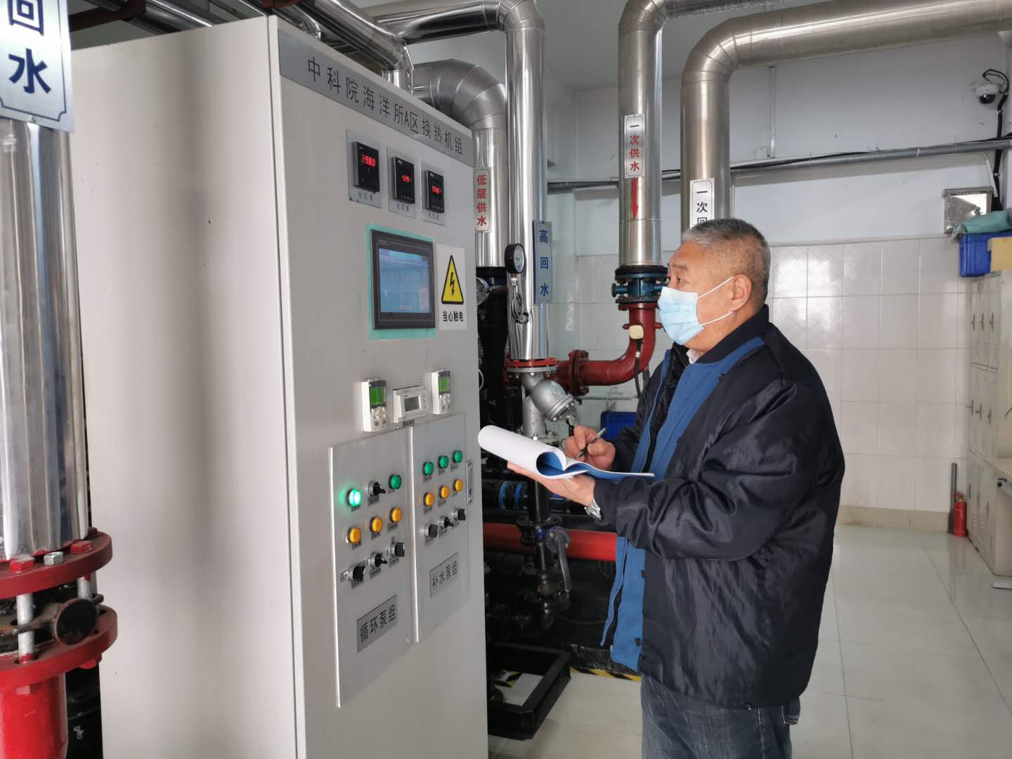 抗击新冠疫情以来,南海路园区、西海岸园区的保障工作始终是满岗全员运转状态。走进园区变电站、换热站,值班员正在认真巡视设备,记录运行数据,保证正常供电供热;在海水系统值班室,值班人员正值守在机组旁,伴随着隆隆的轰鸣声,源源不断地把海水输送到各实验室;在中控室、公寓管理办公室、收发室、会议服务等部门,处处可见值班人员坚守岗位认真忙碌的身影……