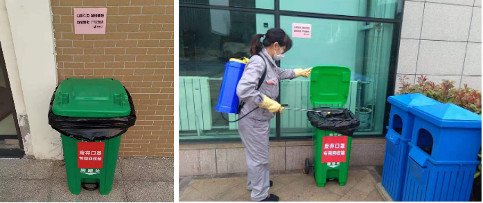 设置废旧口罩回收箱并定期进行消毒
