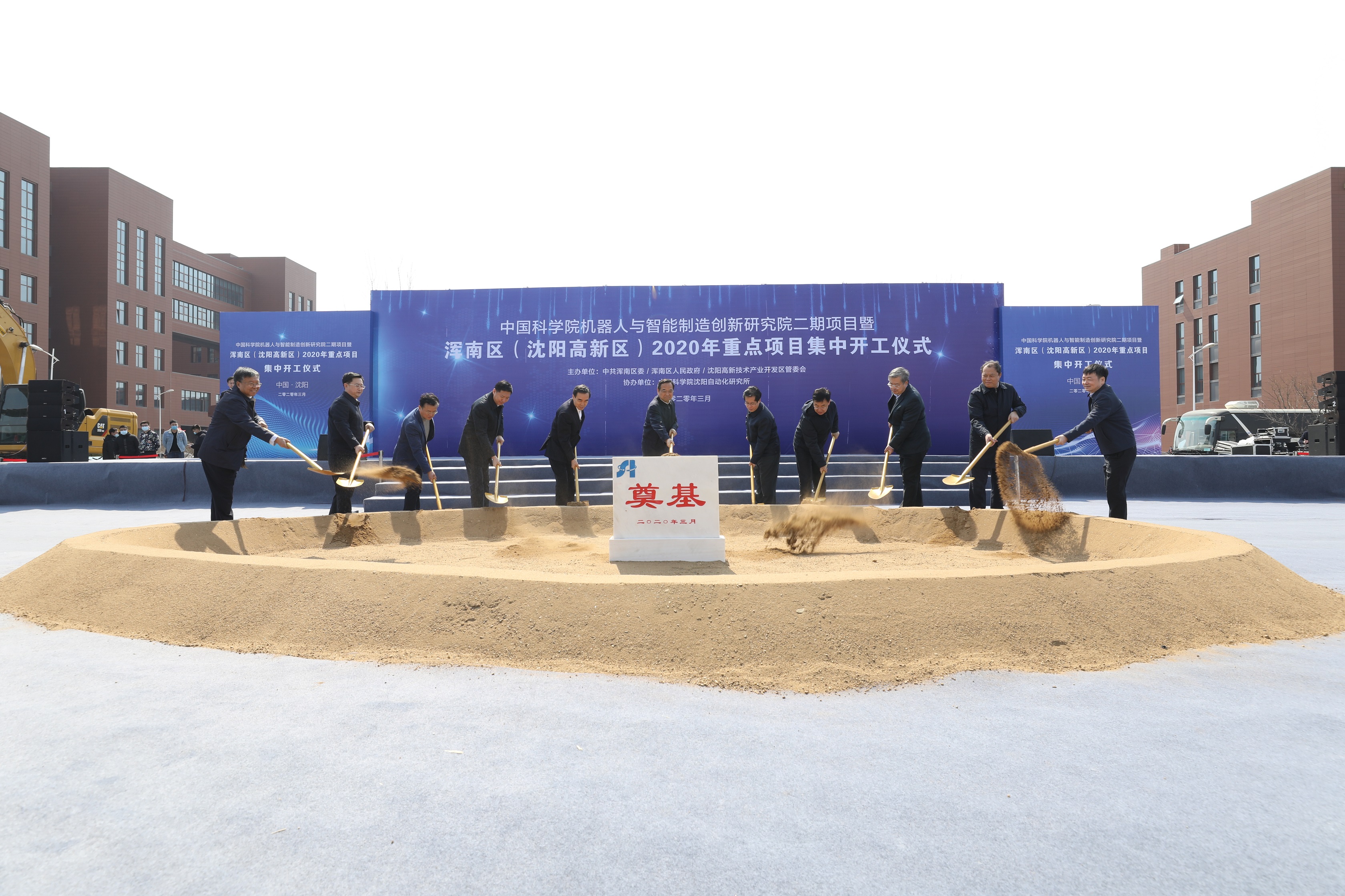 3月30日,浑南区、沈阳高新区2020年重点项目集中开工仪式在中国科学院沈阳自动化研究所创新路所区新开项目现场举行。辽宁省委常委、沈阳市委书记张雷,市委副书记、市长姜有为,市委常委、副市长李松林,市委常委、市委秘书长李强,市政府副市长王忠昆,市政府秘书长曹鹏,浑南区委书记、沈阳高新区党工委书记单义,浑南区政府区长、沈阳高新区管委会主任闫占峰出席活动。沈阳自动化所所长于海斌、党委书记兼副所长桑子刚出席并与主席台领导共同为项目奠基。
