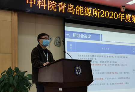 4月21日上午,青岛能源所召开2020年第一季度情况通报会,研究所所领导、党委委员、纪委委员,研究室主任、研究组组长,职能部门负责人、副处长,研究室及职能部门党支部书记,职代会主席团,研究生会代表等70余人参加了会议?;嵋橛傻澄笔榧?、纪委书记冯埃生主持。