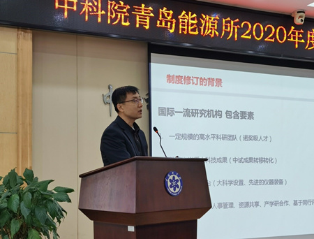 人事教育处向大会通报了联合培养研究生管理方式的政策调整;科技处通报了研究组组群实施细则修订稿;知识产权与成果转化处通报了山东能源研究院成果转化工作思路与拟推进重点举措。情况通报后分别对制度调整和拟制以多种方式广泛征询了意见。(文/图 丁娜)