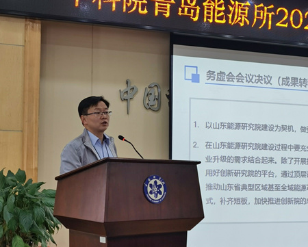 研究所党委书记彭辉向与会代表通报了务虚会关于山东能源研究院建设的指导性原则以及筹建工作进展情况。他指出:山东能源研究院的筹建是研究所实现跨越发展的历史机遇,所务会已经确定了山东能源研究院筹建的基本原则,提出了探索机制体制创新,推进组群建设,完善领域布局,加强领军人才引进,谋划布局大科学装置,加强与行业龙头企业合作推进成果转移转化等一系列工作部署,各职能部门和课题组要把握发展机遇,细化工作举措,明确工作目标,增强责任意识,共同推进山东能源研究院建设,实现研究所跨越发展的目标。