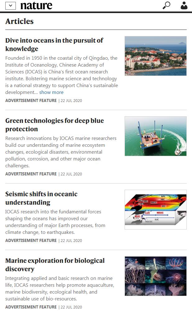 《自然》官方网站同步上线了海洋所成立七十周年所庆纪念专题: www.nature.com/collections/iocas