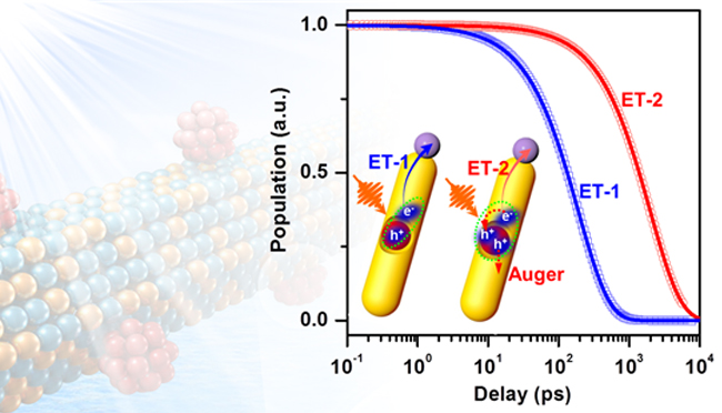多电荷转移过程在自然光合作用和人工光催化体系普遍存在。由于材料的光吸收截面和激发光源的光子通量所限制,通常很难在分子或纳米材料中同时激发出多个电子空穴对并驱动多电荷同时转移。更为常见的是,捕光材料逐个吸收光子并在每个光子吸收后驱动单个电荷转移,从而在催化中心实现多电荷逐步累积。在这种逐步电荷分离的过程中,由于电子与空穴转移速率的欠匹配(电子转移速率往往要快于空穴转移)以及催化剂转化速率较慢,捕光材料和催化材料上不可避免地会出现多余电荷。在纳米尺度,这些多余电荷的存在将导致强烈的多体效应及库伦势垒,可能是纳米材料中多电荷转移的瓶颈所在。