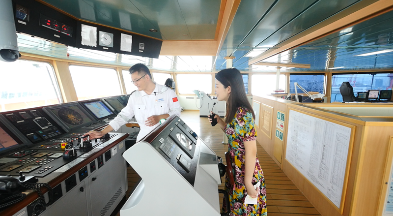 活动首日,在“科学”号见习船长梁喜祥带领下,营员们在线云游了有着“大洋移动实验室”美誉的“科学”号科考船,云端感受大国重器魅力。从驾驶台、综合仪器室、ROV操控室、船载实验室到作业甲板、作业仪器,再到餐厅、宿舍、休闲室、医疗室,营员们详细了解了“科学”号的整体性能、科考队员的海上科考工作及生活环境,为祖国先进的科考装备及国际一流的深远海探测水平深感自豪。