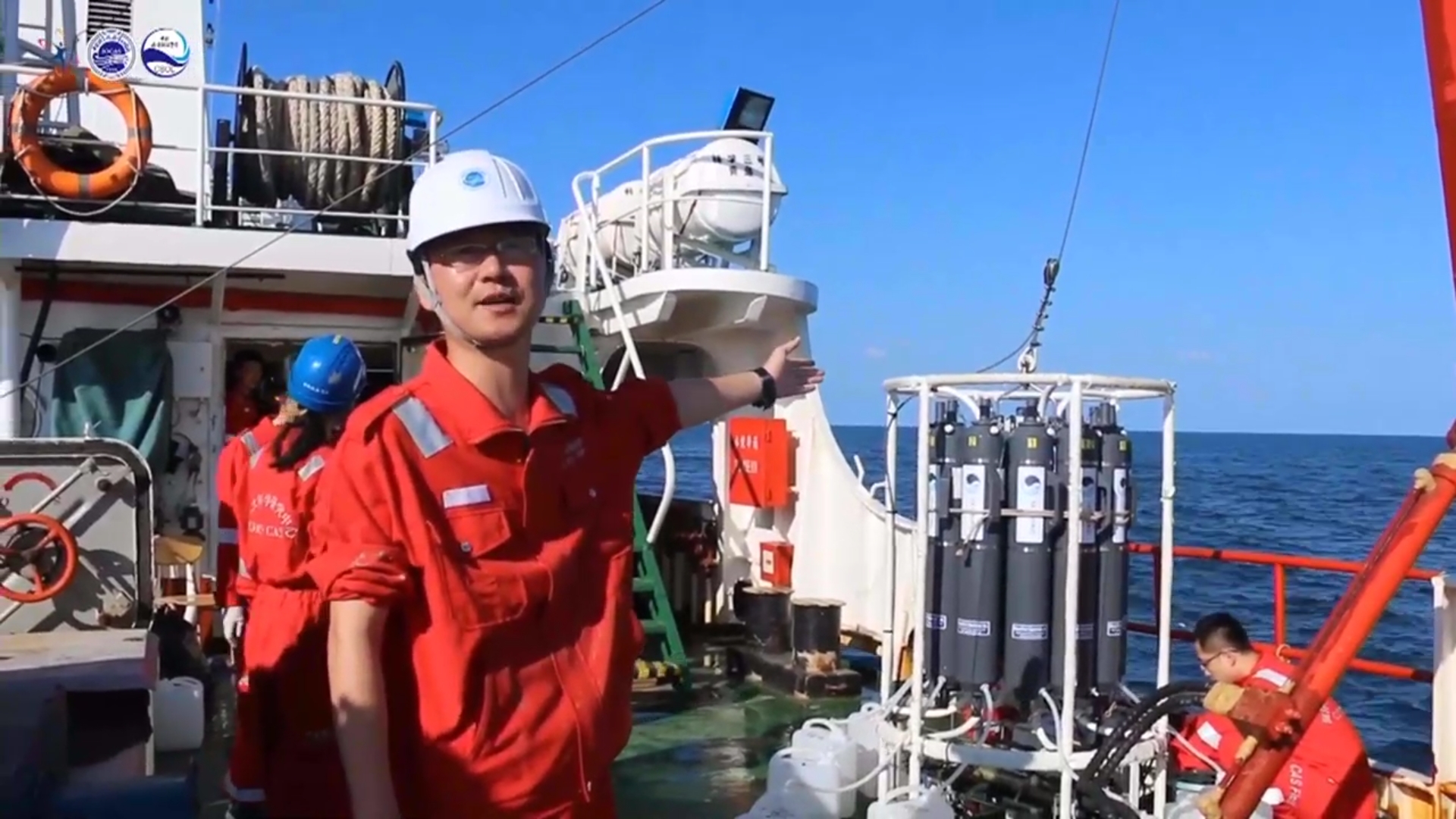 汪嘉宁研究员展示西太平洋潜标布放作业
