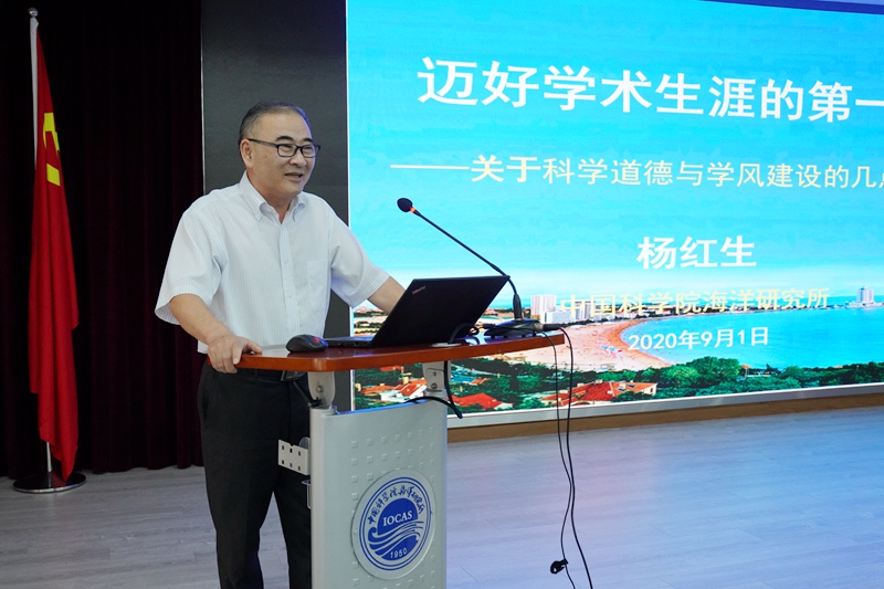 报告最后,杨红生副所长送给新职工和新同学“一生行知、二人有师、三位一体、四者皆知、五招绝技”五点建议,并希望大家在海洋所的平台上努力做一名具有“哲学思维、物理构架、数学表达、化学分析、诗歌语言和高洁人品”的科技工作者,为研究所营造风清气正的科研氛围。