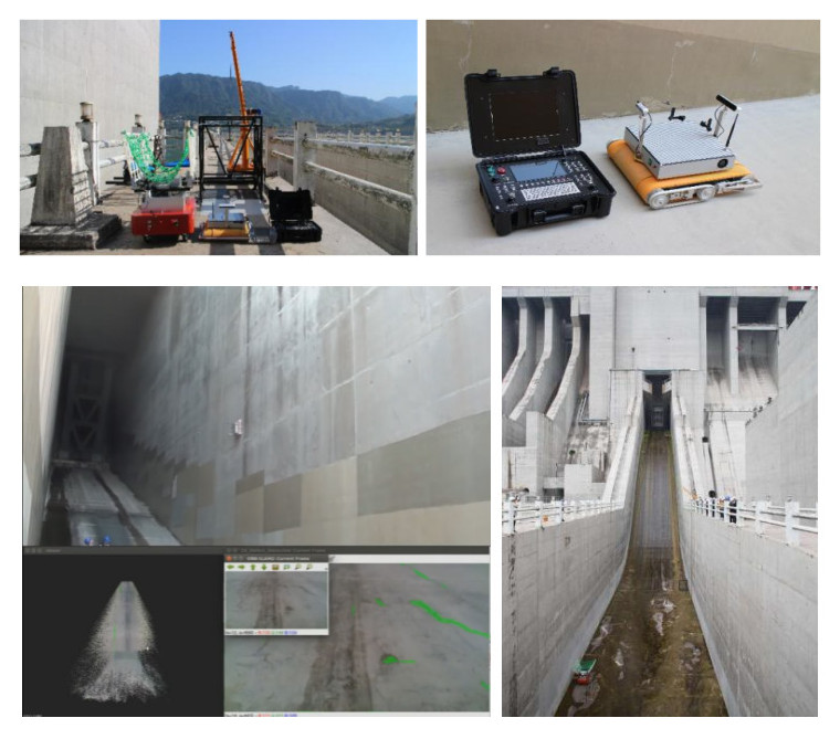 大型水电站混凝土泄水设施(深孔、表孔、排漂孔等)缺陷检测均采用搭设满堂脚手架检修平台并由人工检测的传统方式,存在安全风险高、检修周期长、作业难度大且费用高等不足。