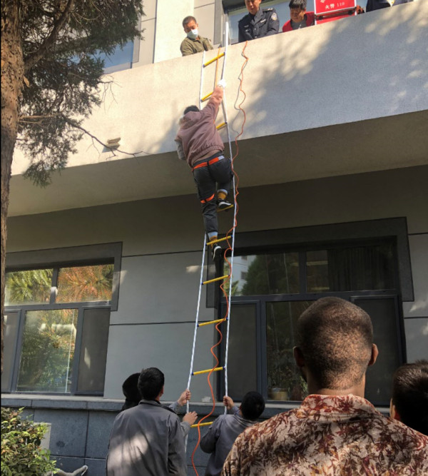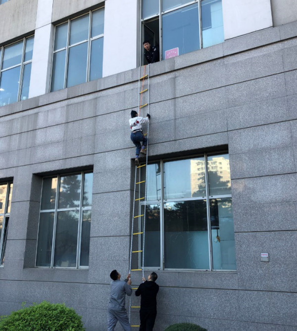 为了使疏散演练达到预期效果,提升演练的真实感,本次演练在楼内投放了烟雾弹,由专业消防培训教官全程指挥。在演练过程中,各楼职工和学生都能够认真地按照演练预案,捂住口鼻,低姿、安全、有秩序地从各安全通道和出口迅速疏散到楼外。参加演练的全部人员安全撤离到大楼外面的安全地带后,演习总指挥辽宁益安消防知识宣传中心的孙明龙主任对本次消防演练情况进行了总结,他选取了今年沈阳发生的有代表性的燃气火灾爆炸、电器火灾爆炸事故案例为大家讲解了有关燃气和电器使用安全常识及注意事项。此外,为了使职工和学生能够了解掌握更多的消防逃生方法,本次演练还增加了消防软梯、速降绳等内容及实地演练互动等环节,激发了广大职工学生参与的积极性。本次演练活动进一步提升了全所职工和学生的消防安全意识和逃生自救的技能,达到了较好的演练效果。