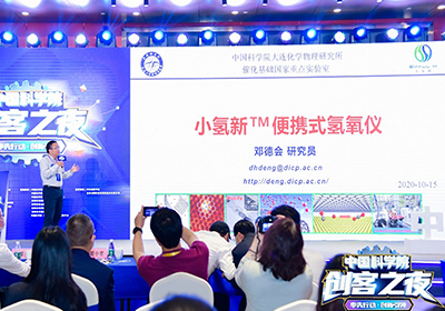 10月15日,2020年全国双创活动周“中国科学院创客之夜”在深圳市举行,中国科学院大连化学物理研究所催化基础国家重点实验室邓德会研究员携团队自主研发的小氢新TM便携式氢氧仪参加“快闪路演”项目汇报。共有30个优秀双创项目参加“快闪路演”活动,150余人受邀参与了线下活动?;疃?,邓德会作了题为“小氢新TM便携式氢氧仪”的汇报,简要阐述了便携式氢氧仪的研发背景、历程和进展情况。