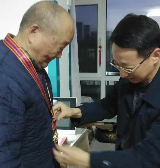 徐岩书记为志愿军老战士佩戴纪念章