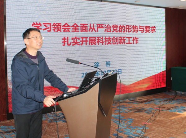 党委书记、副所长徐岩作《学习领会全面从严治党的形势与要求,扎实开展科技创新工作》报告