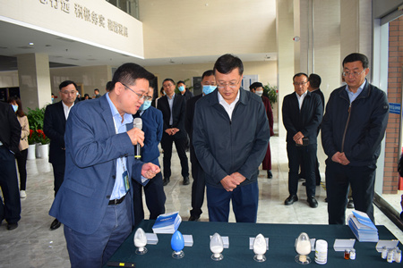 10月29日,青岛市政协主席杨军一行来所调研,详细了解研究所发展及山东能源研究院建设情况,并参观了实验室。