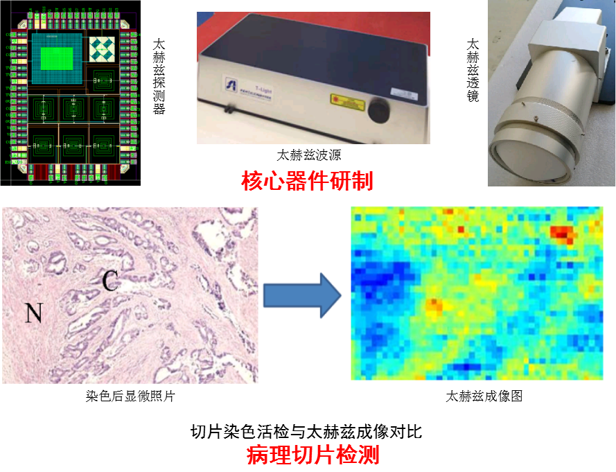 在项目负责人祁峰研究员的带领下,针对太赫兹癌症检测成像分辨率不足的技术瓶颈和国产太赫兹核心器件缺乏等问题,科研人员从波动性出发提出并实现了超分辨成像方法,自主开发了包括波源、透镜以及探测器等核心器件并实现了国产化。其中波源和透镜主要性能指标超国外同类进口产品,大幅提高了太赫兹成像系统性能。