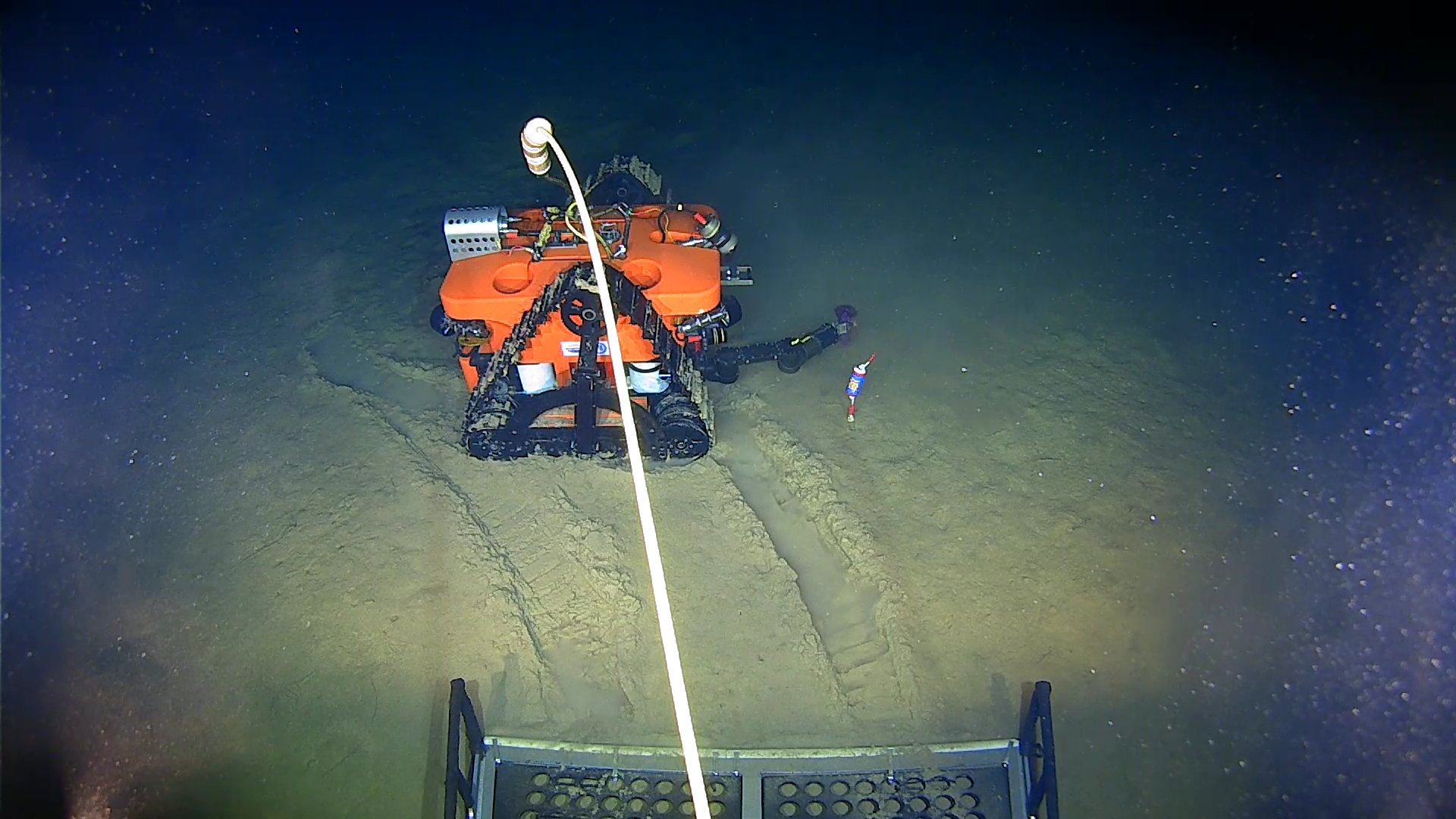 漫游者潜水器履带爬行模式下在海底出库爬行和机械手作业