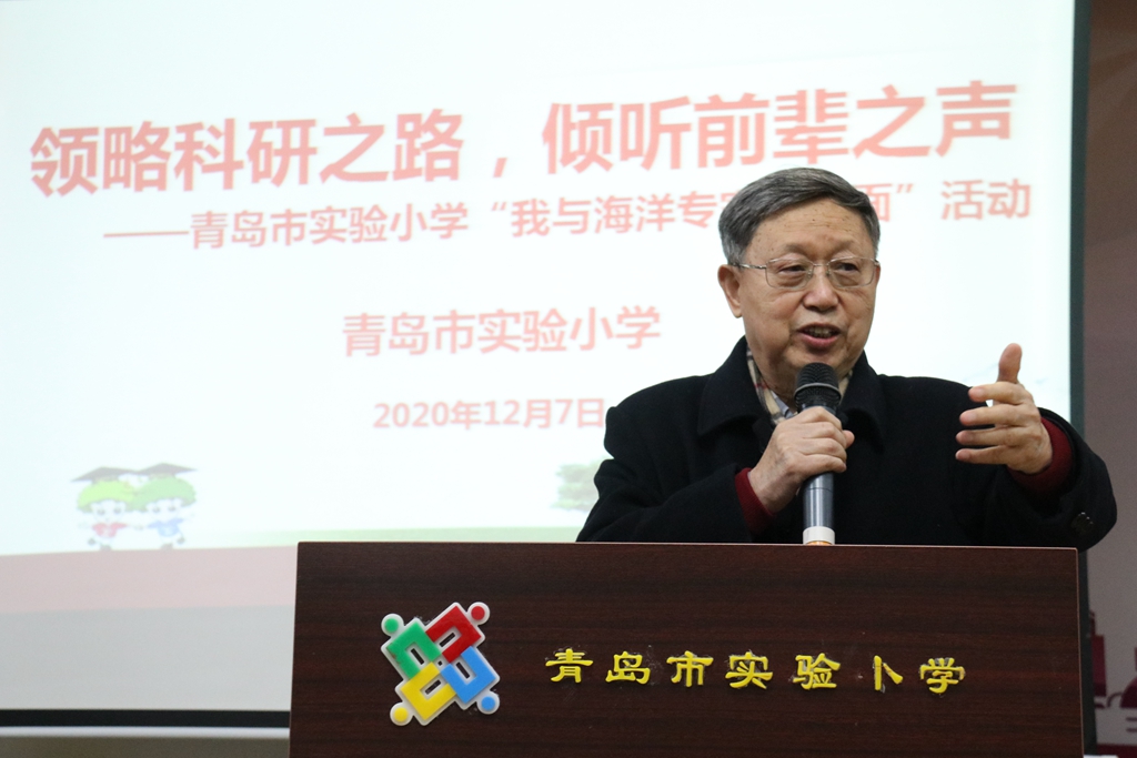 12月7日,海洋所胡敦欣院士、海洋所青促会会长胡石建研究员应邀赴青岛市实验小学开展海洋科普活动,市实验小学校长梁景萱、副校长胡繁华及百余名师生现场参与活动。
