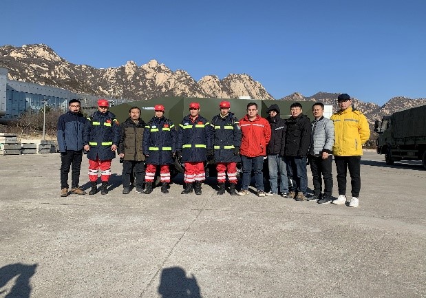 受疫情影响,经前期多次协调确认,课题于2020年11月22日至12月18日,实施了应用示范现场试验,总计26天,课题参加人员总计21人。地震救援应用示范地点安排在北京国家地震紧急救援训练基地,应用示范单位是中国国际救援队,消防救援应用示范地点在上海消防培训基地,应用示范单位是上海市消防救援总队训练与战勤保障支队。应用示范内容包括装备介绍与演示、培训与实操、联合演练和交流研讨。
