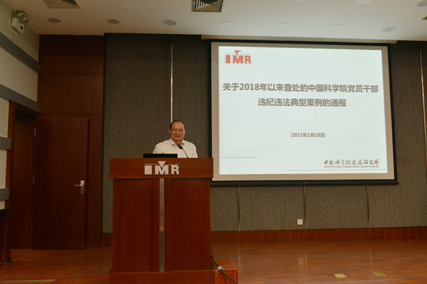 1月18日,金属所召开了2020年度工作总结大会,进行了科研工作进展总结和全所工作总结,通报了2018年以来查处的中国科学院党员干部违纪违法的典型案例,对2020年度优秀奖获得者进行了表彰。孙晓峰副所长主持大会。