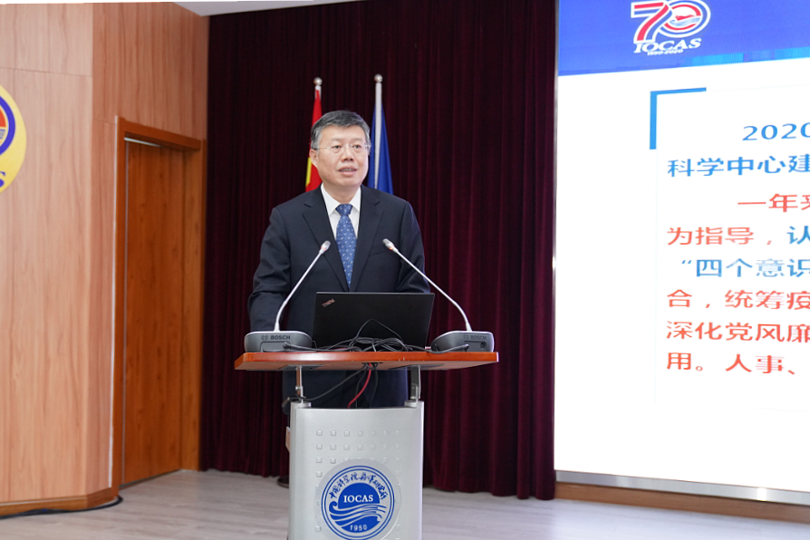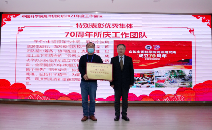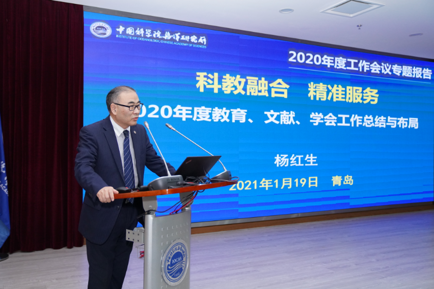 1月19日,中国科学院海洋研究所召开2021年度工作会议。所党政班子成员、院士、老领导、科研及管理支撑骨干、党支部书记、职代会常委以及民主党派、无党派人士、研究生代表等参加会议。党委书记王辉、副所长李超伦分别主持会议?;嵋橥ü缦蛉型街辈?。