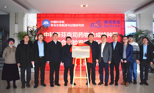 青岛能源所联合斯芬克司药物研发(天津)股份有限公司围绕绿色制药开发酶法生物合成新工艺,打造药物合成特种酶元件库和产研合作平台,共建“中科斯芬克司药物合成特种酶联合实验室”,1月21日上午在青岛能源所举行了揭牌仪式。青岛能源所党委副书记许辉,包头市新型工业园区管委会党工委书记李锁,斯芬克司药物研发股份有限公司董事长兼总经理姚庆佳,青岛能源所副所长、微生物制造工程中心主任吕雪峰共同为联合实验室揭牌。斯芬克司公司董事会秘书齐竞烨,包头市土右旗招商局局长厍瑞杰,研究所知识产权与成果转化处、科技处、微生物制造工程中心相关科研管理人员参加揭牌仪式。