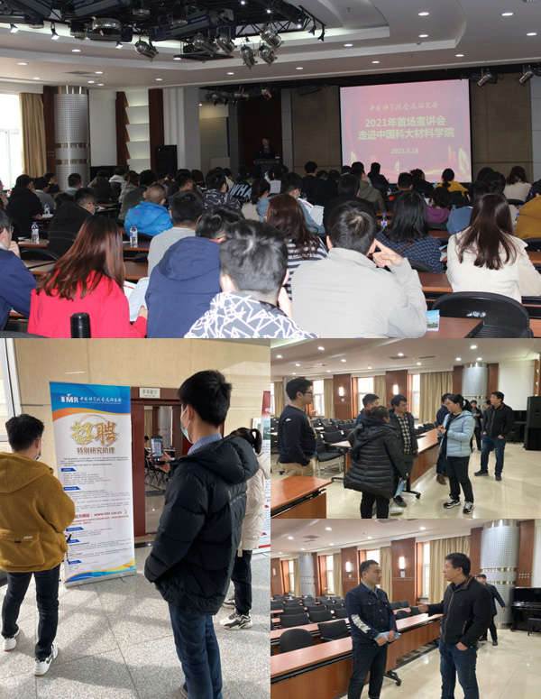 为向我所研究生做好人事人才、所创基金项目等政策宣传,使他们系统了解我所人才招聘政策、薪酬待遇等问题,3月18日下午,人事处与团委联合开展了“2021年首场招聘宣讲会——走进中国科大材料学院”活动。我所2021届、2022届毕业生及其他年级研究生共150余人参加了宣讲会。宣讲会由团委书记王申瑞主持。
